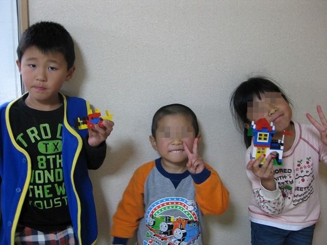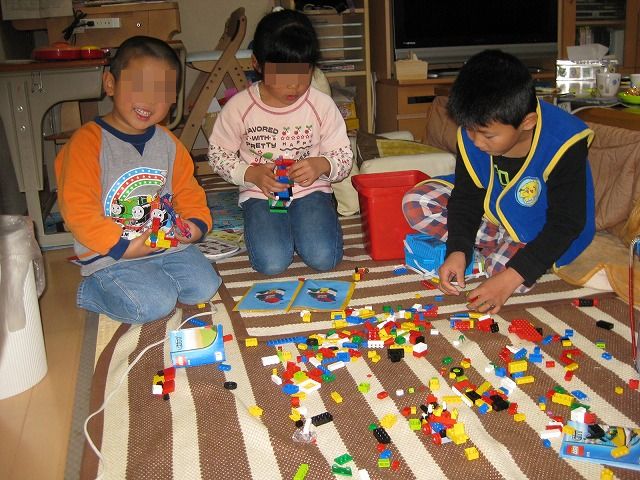 ワイワイやってました。せっかくなので、レゴ遊びの最中に写真をパチリ。外は雨で何もできないし、まあいいか。我が家で集まっての遊びです。紹介しましょう。三男と同級生のNちゃんです。Nちゃんの弟のYくんです。Nちゃんとは大の仲良しなので、これからもどうぞよろしくお願いします。