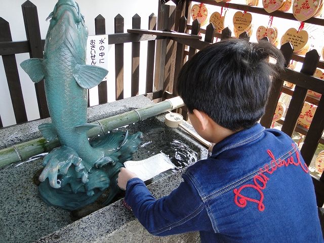 水につけるおみくじがあったので、三男だけチャレンジ。