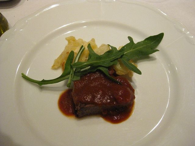我々のメイン、牛フィレ肉の赤ワインソース。