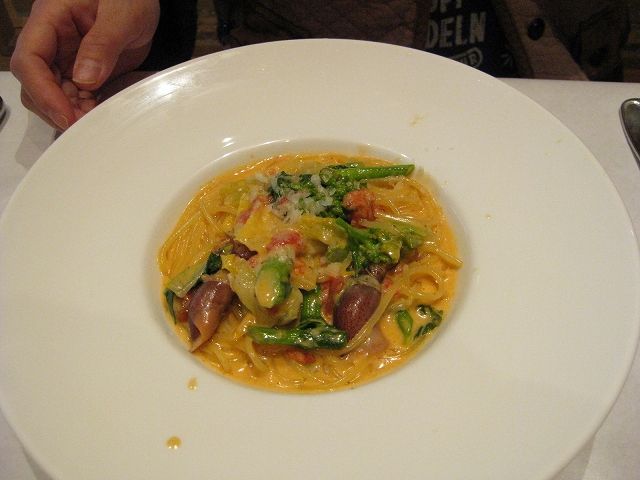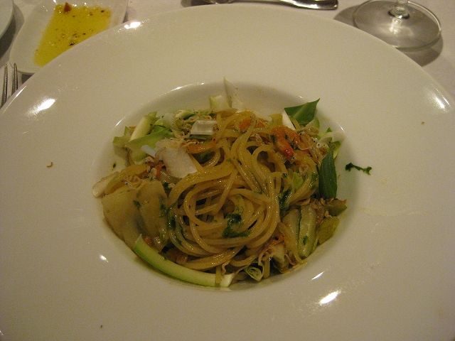 妻はホタルイカのクリームソースパスタ、僕はサクラエビとじゃこのパスタを。