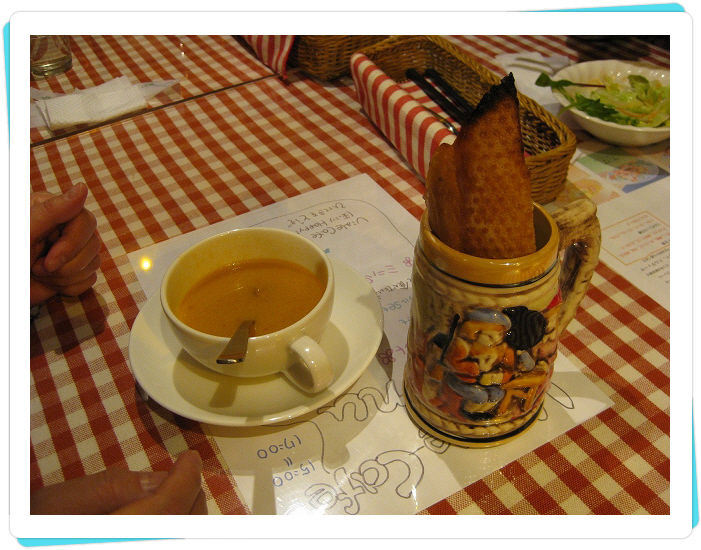 妻のセットには、スープとハーフカットのパンがついてきます。
