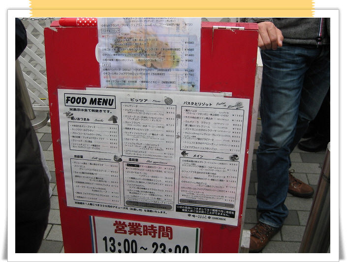 店の前にあるメニューです。