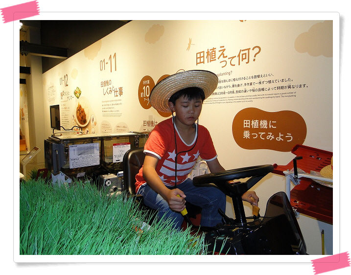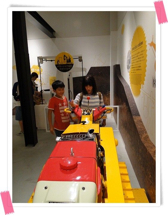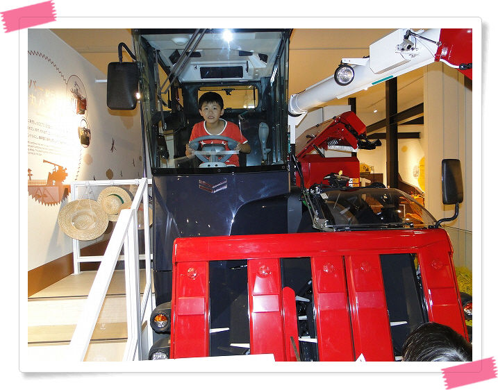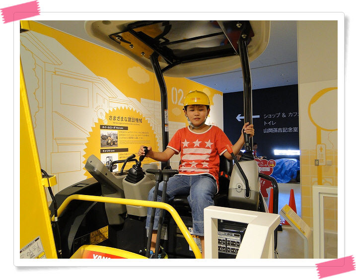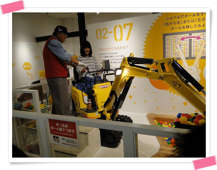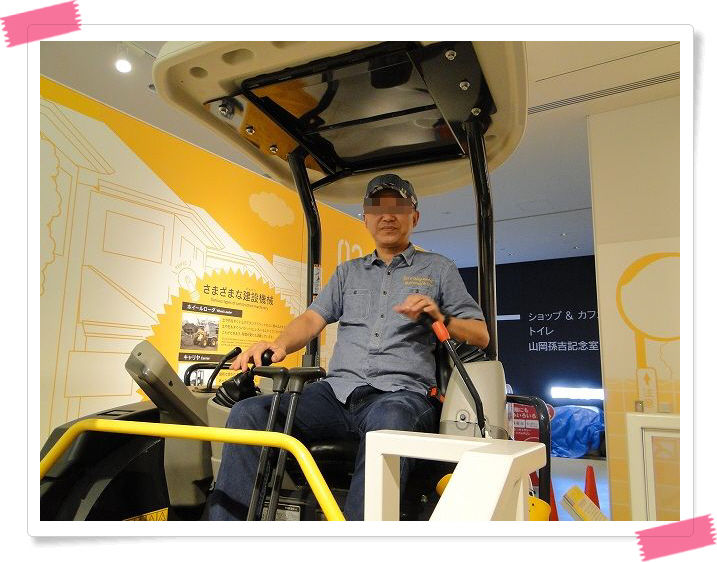 中に入ると、耕運機やトラクター、ショベルカーなどあり、その場で乗れます。