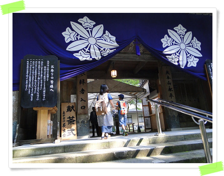 2日目もいい天気でした。朝は少し肌寒かった永平寺前。