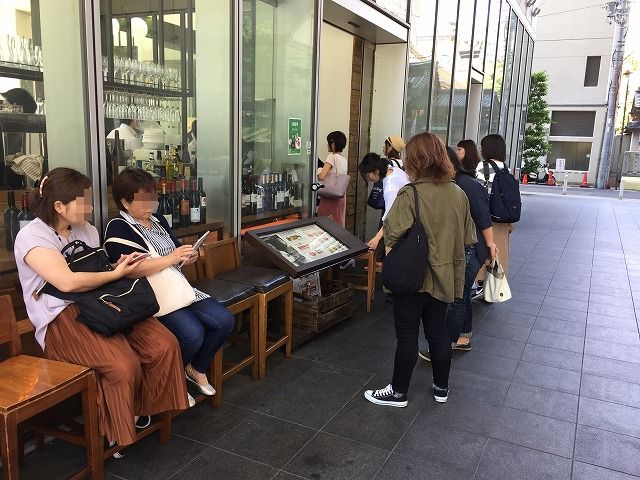 店の前で人が待っていました。