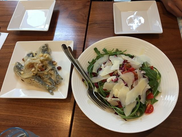 サラダといわしのマリネ。ライスコロッケ。
