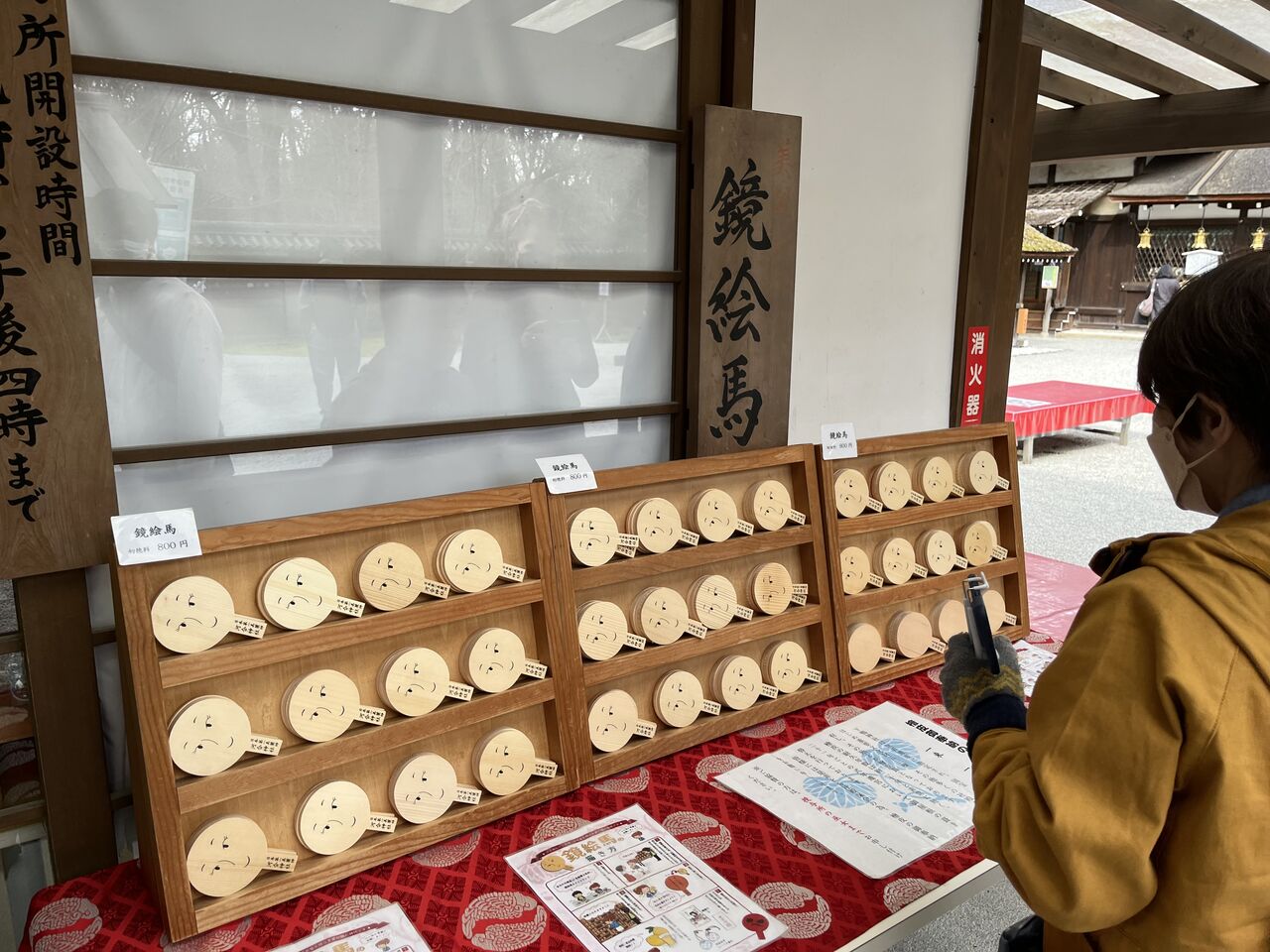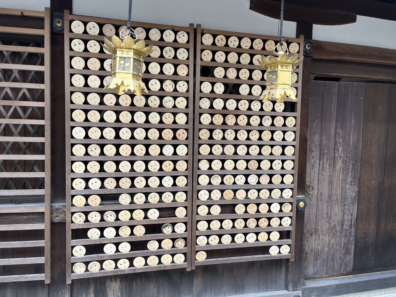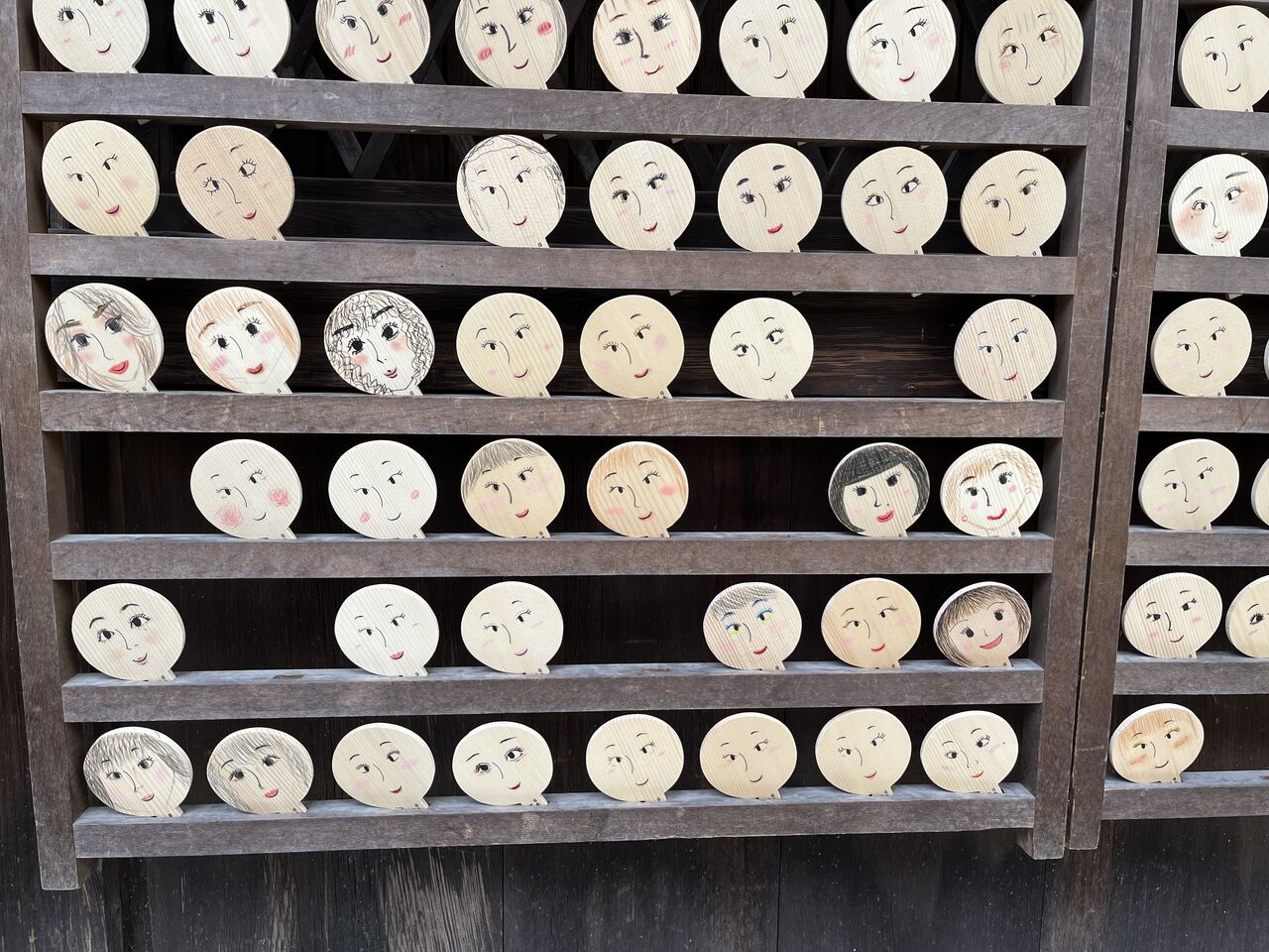 女性の方が自分で描いた顔が飾られています。