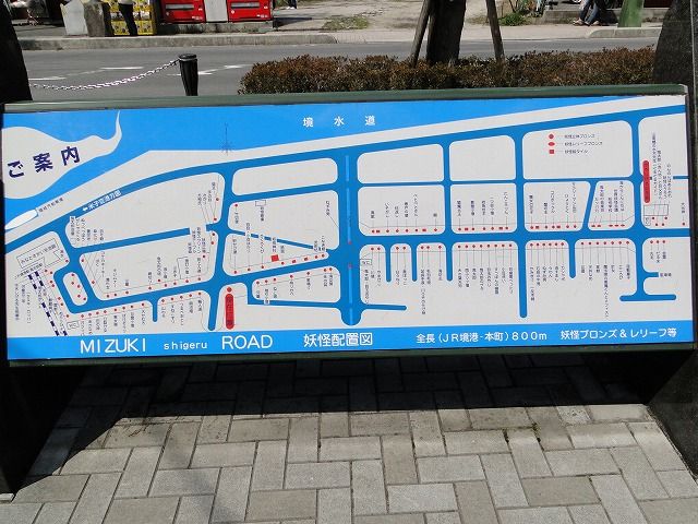 水木しげるロードは1kmちょっとのほぼ直線ロードです。