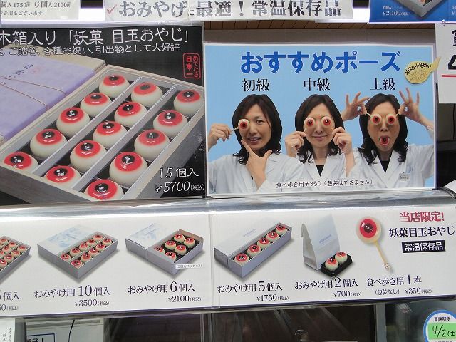 みやげもの屋がたくさんあって、どの店でもつい買いたくなります。